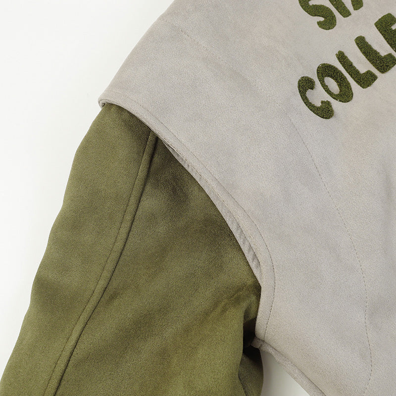 Varsity 6th Collection bomber jacket by Fear Of God. made from wool felt with suede leather sleeves. detailed with macro logo patch on the back. Oversized fit. snap button closure. inseam side pockets. ribbed knit edges. Interior lined in diamond-quilted nylon with polyester padding. The model is 183 cm tall and wears a size L.