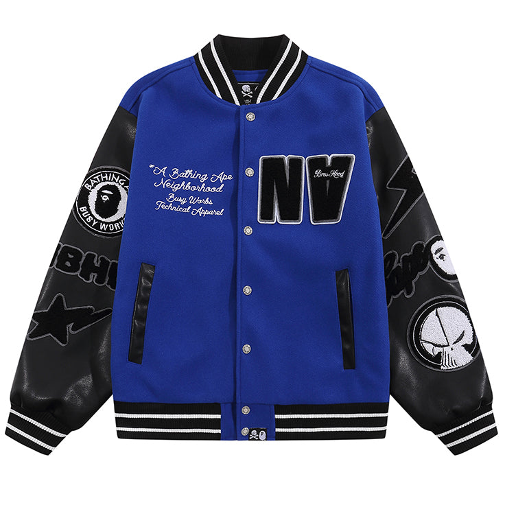 bp Leather sleeves Baseball Jacket