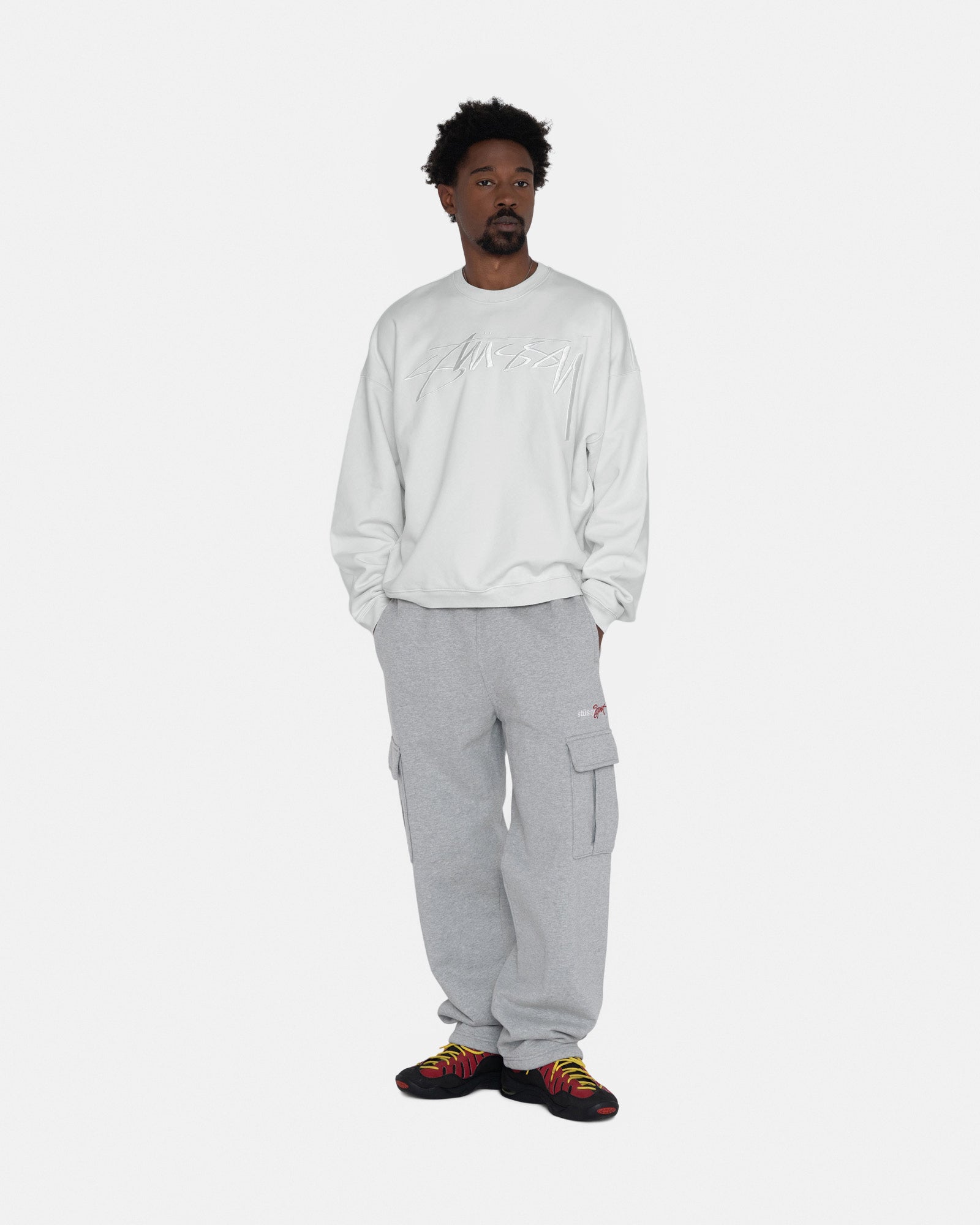 PRODUCT DETAILS- Stüssy smooth stock logo embroidery on center chest- 1x1 heavy rib collar. cuffs and hem- Set-in sleeves- Slightly cropped. sits at the hipAngel is 6' wearing size Medium 100% Cotton Imported