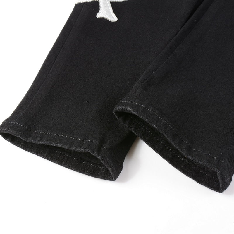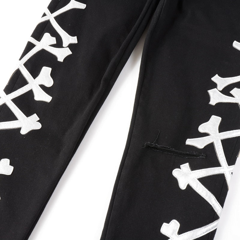 PF22 COLLECTION ITALIAN STRETCH DENIM. FEATURING LEATHER DISTRESSED PATCHES.