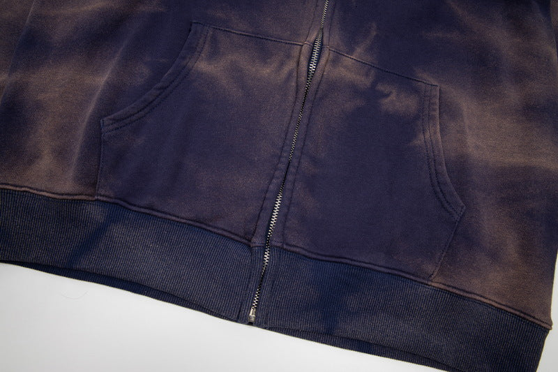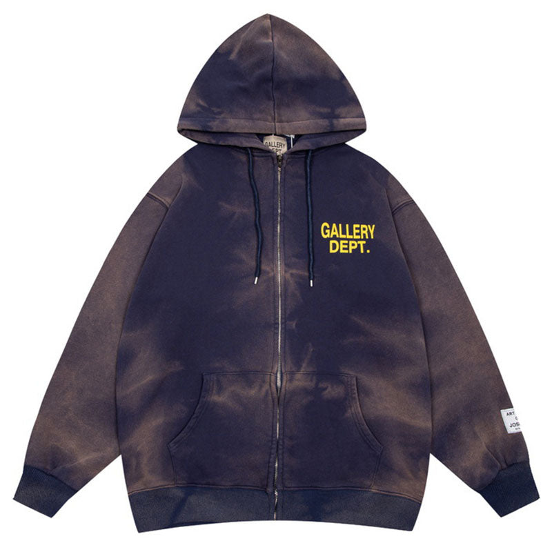 GA DE. Logo-Print Bleached Cotton-Jersey Zip-Up Hoodie