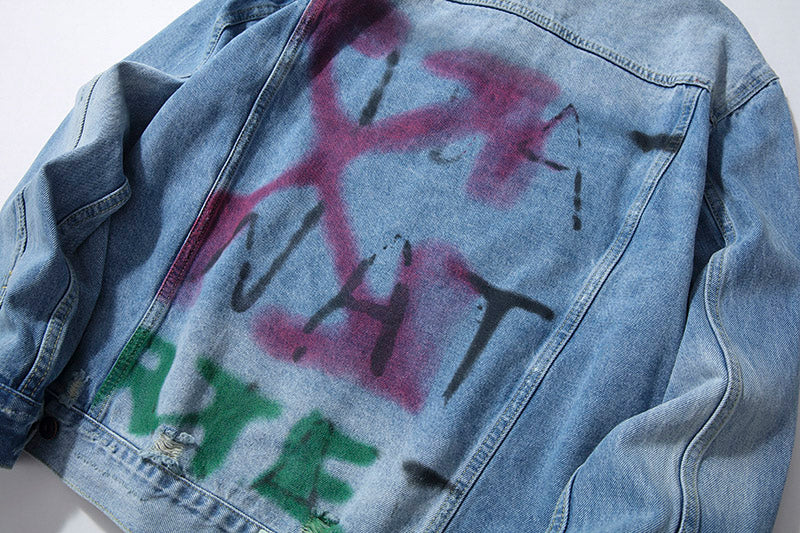 OW Hand drawn doodle rendering arrow distressed denim jacket